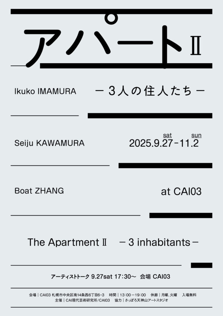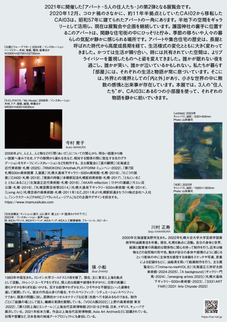 11/2で終了しました「アパートⅡ-3人の住人たち-」は多くの皆さまからのご要望にお応えし、 2025年12/22までご予約制で延長 することと致しました。